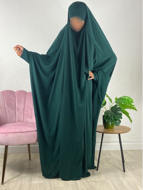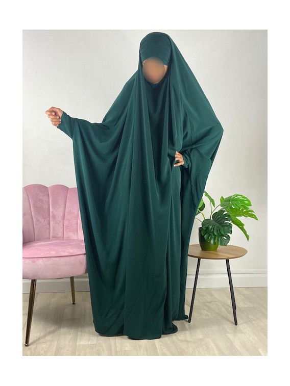 Jilbab 1 bucată saoudien A0S Vert sapin 56 - lână piersică - El Bassira