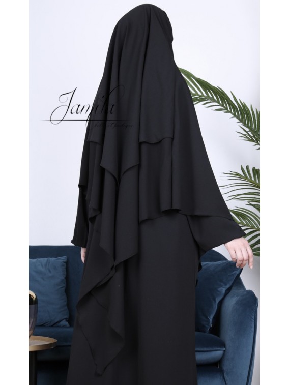 Khimar 2 voaluri Negru - microfibră - Jamila