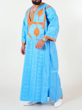Melhfa - uniforma Sahrawi - albastru deschis și auriu