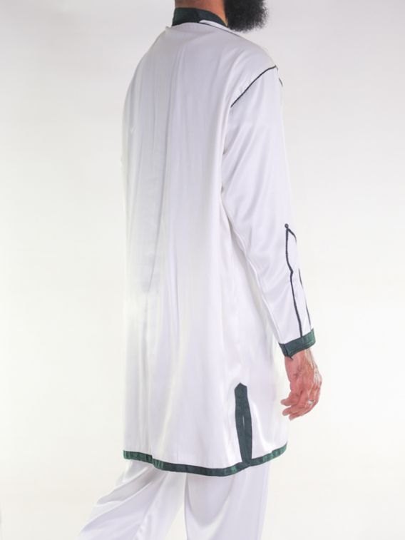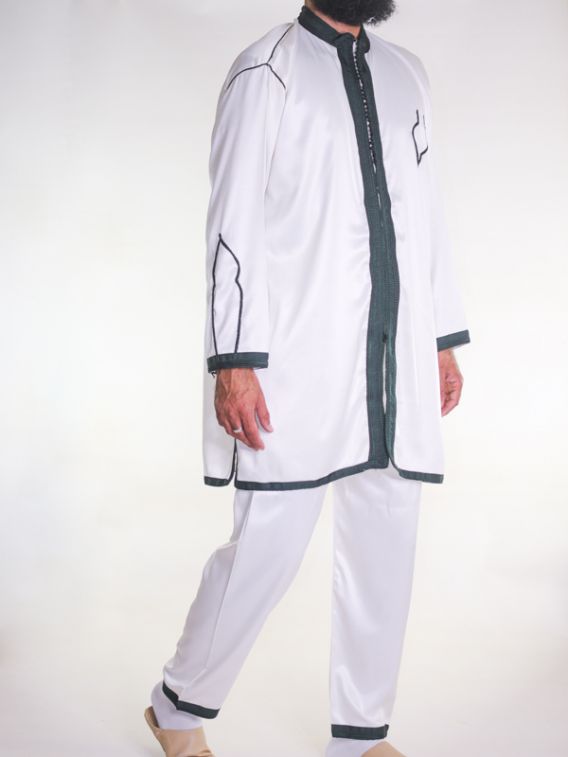 Jabador bărbătesc din 2 piese - Off-white cu broderie verde