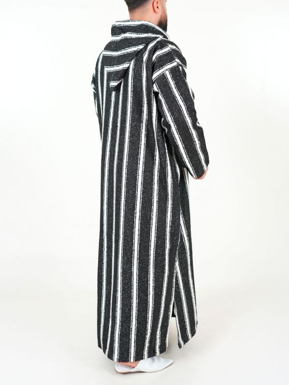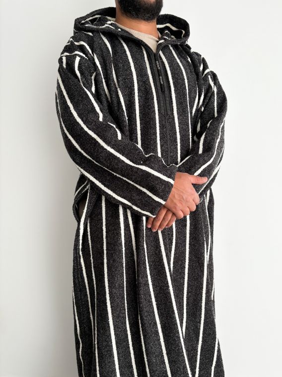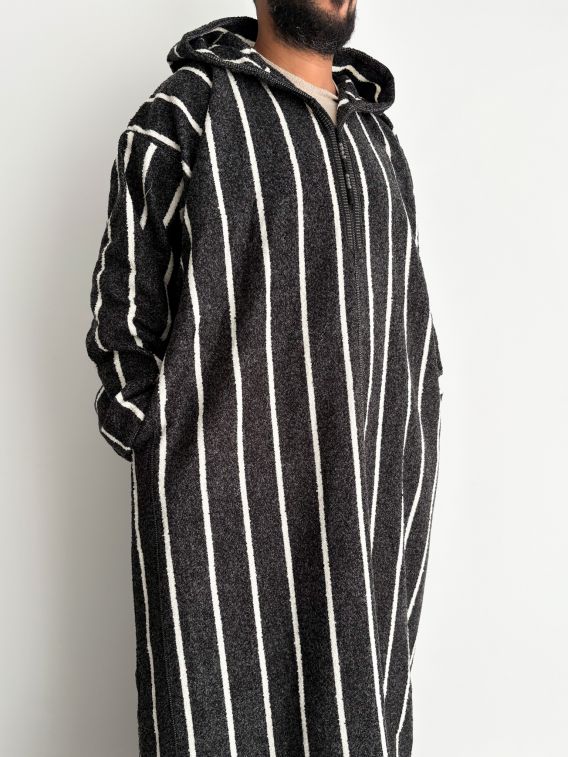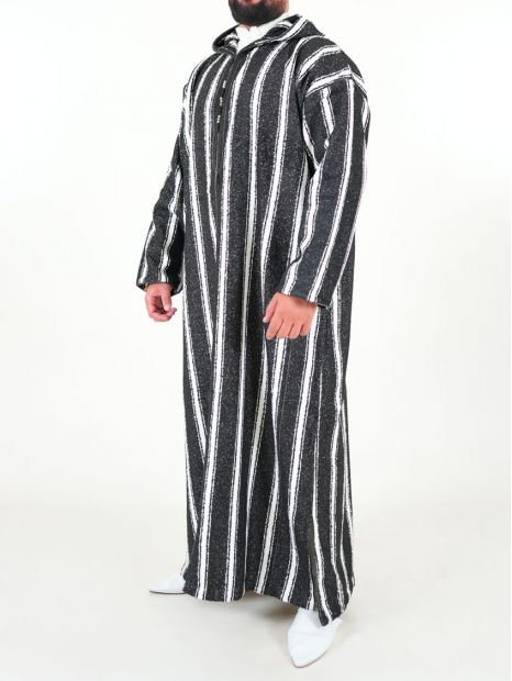 Ouazzania Moroccan Djellaba iarnă - Negru cu dungi