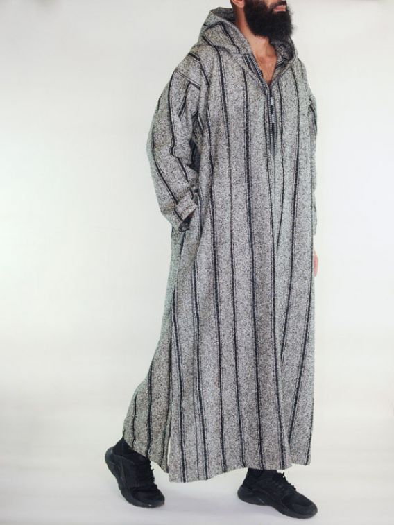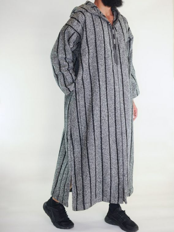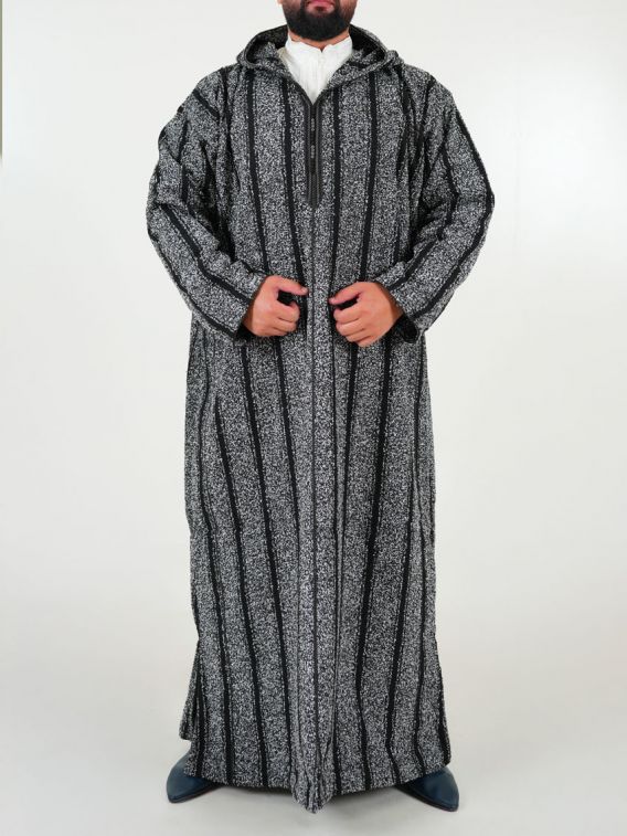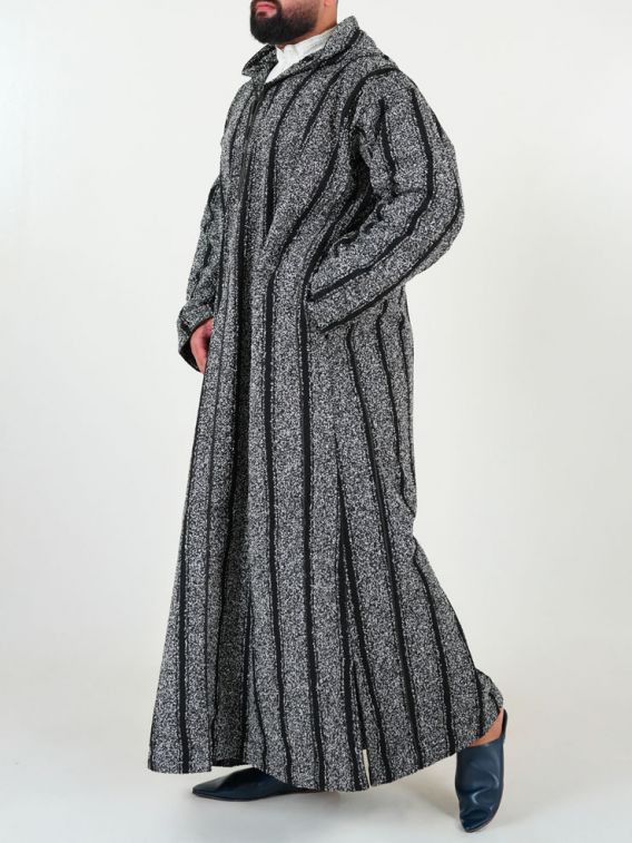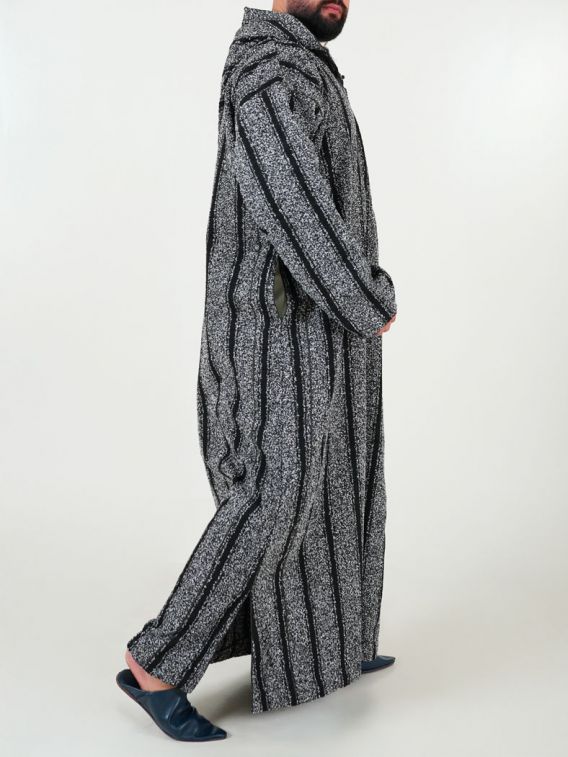 Ouazzania Moroccan Djellaba iarnă - dungi gri închis