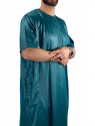 Atlas Qamis Satin albastru verde - mâneci scurte