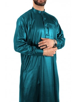 Blågrön Emirati Qamis - Satin Precious Pris 29,90 € Emiratiska Qamis från Dubai Dyrbart satintyg finns i flera storlekar och färger Lägg till i varukorgen
