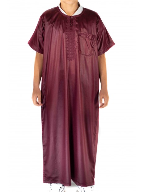 Qamis Barn / Tonåring Bordeaux satin kortärmad - Atlas