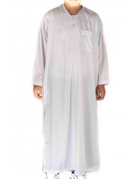 Barn/Teen Qamis Vit satin med långa ärmar - Atlas