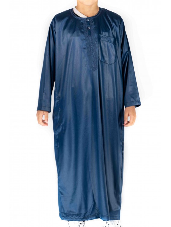 Qamis Marinblå långärmad satin för barn/tonåringar - Atlas